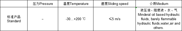 標準材料異形圈:填充聚四氟乙烯F-PTFE或聚氨酯PU0形圈:丁腈橡膠NBR或氟橡膠FKM特點-低摩擦,低粘性摩擦-在工作出過程中有極好的調節和定位能力-對于行程短和頻率高條件下使用的防塵圈可以變換材料定做-特別適用于大直徑活塞桿